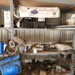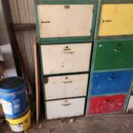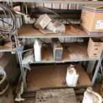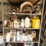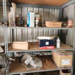 metal shelving and metal cabinets,